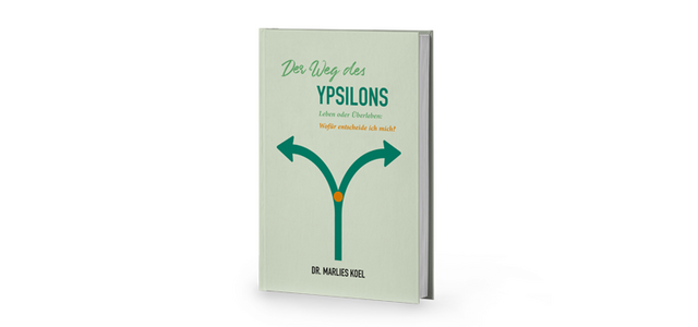 In her book, published in October 2019, she differentiates between the survival path “The glass is half empty” and the life path “The glass is half full”. The so-called crossing point at the “Y” is the place where we decide: Do we turn left or right? The left path stands for the “survival path”, the right for the “life path”.